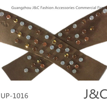 4cm Poliéster Negro Blanco Marrón Piedra de vidrio e hilo dorado Cinta para zapatos hecha a máquina