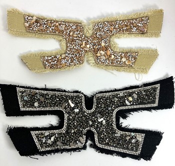 4cmポリエステル黒白茶色のガラス石と金糸マシンは靴テープを作った